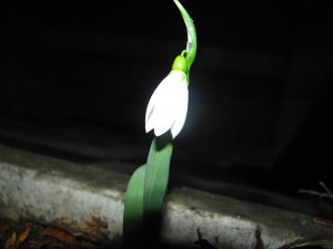 С огромна надежда всичко това да е вярно, аз се хвърлих към следващия експеримент. Единственото цъфнало цвете в края на февруари в нашия двор е кокичето Galanthus nivalis.